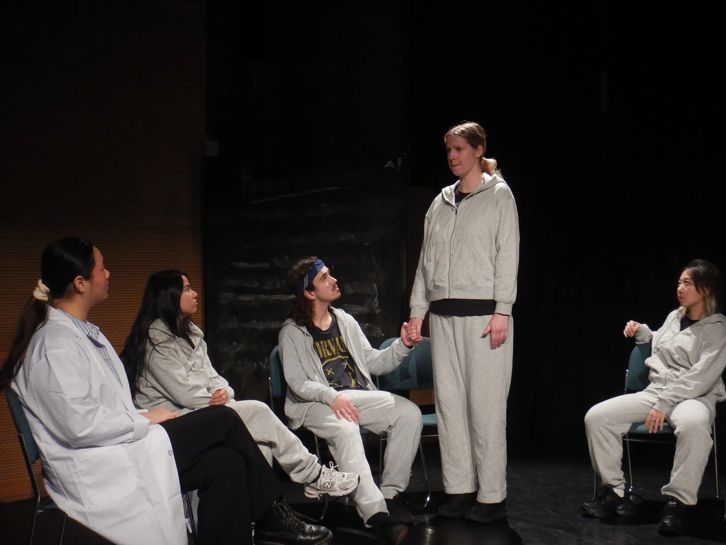 The rehearsal process was grounded in research into addiction and recovery, alongside an actor-centred approach to voice, movement, and imagination. Working with a neurodivergent ensemble, I adapted rehearsal structures to be more flexible, transparent, and responsive, allowing space for different rhythms of learning, processing, and performance. This included clear communication, consent-based practices, and collaborative problem-solving, creating an environment where difficult material could be explored with both emotional depth and care.