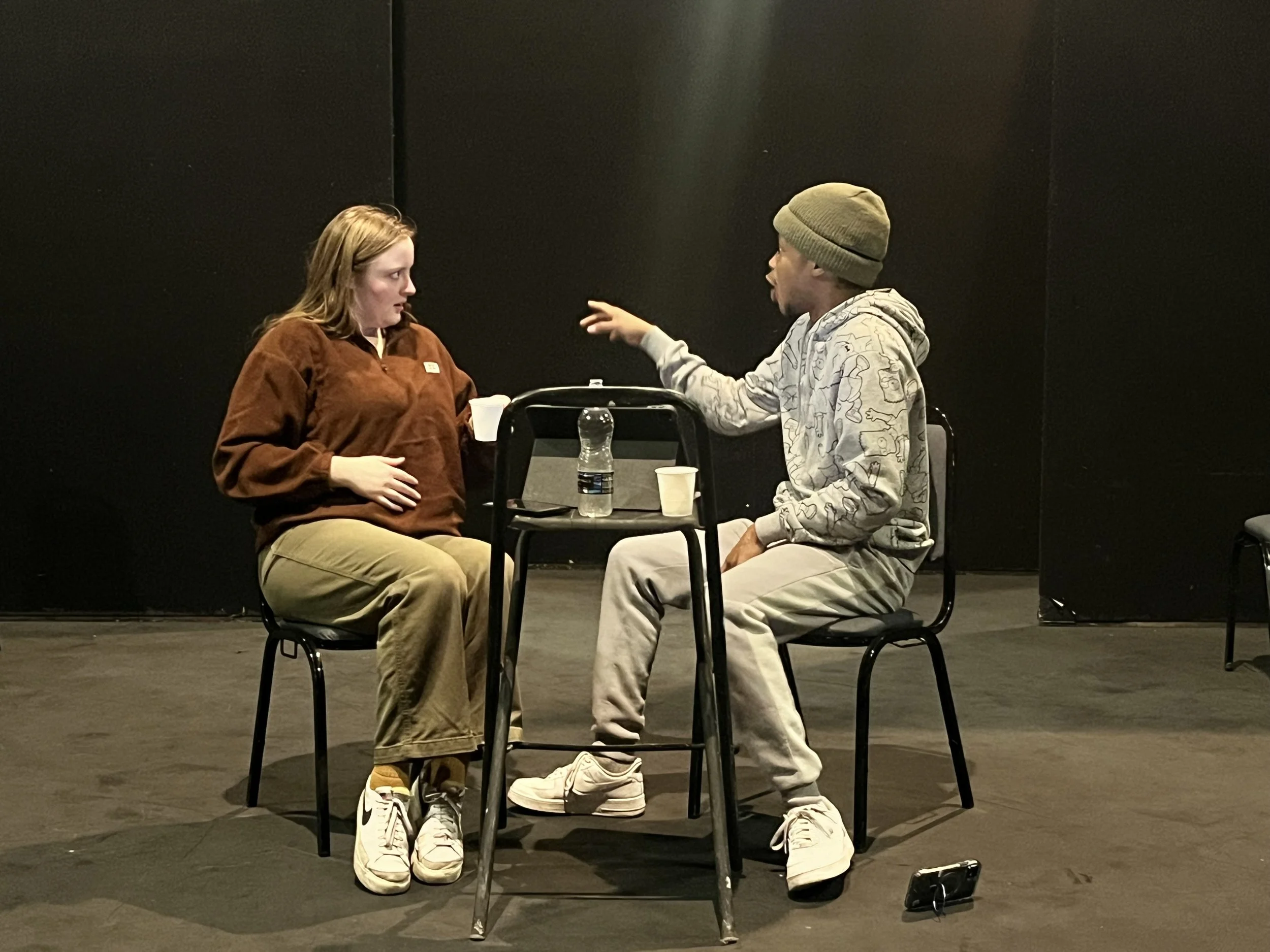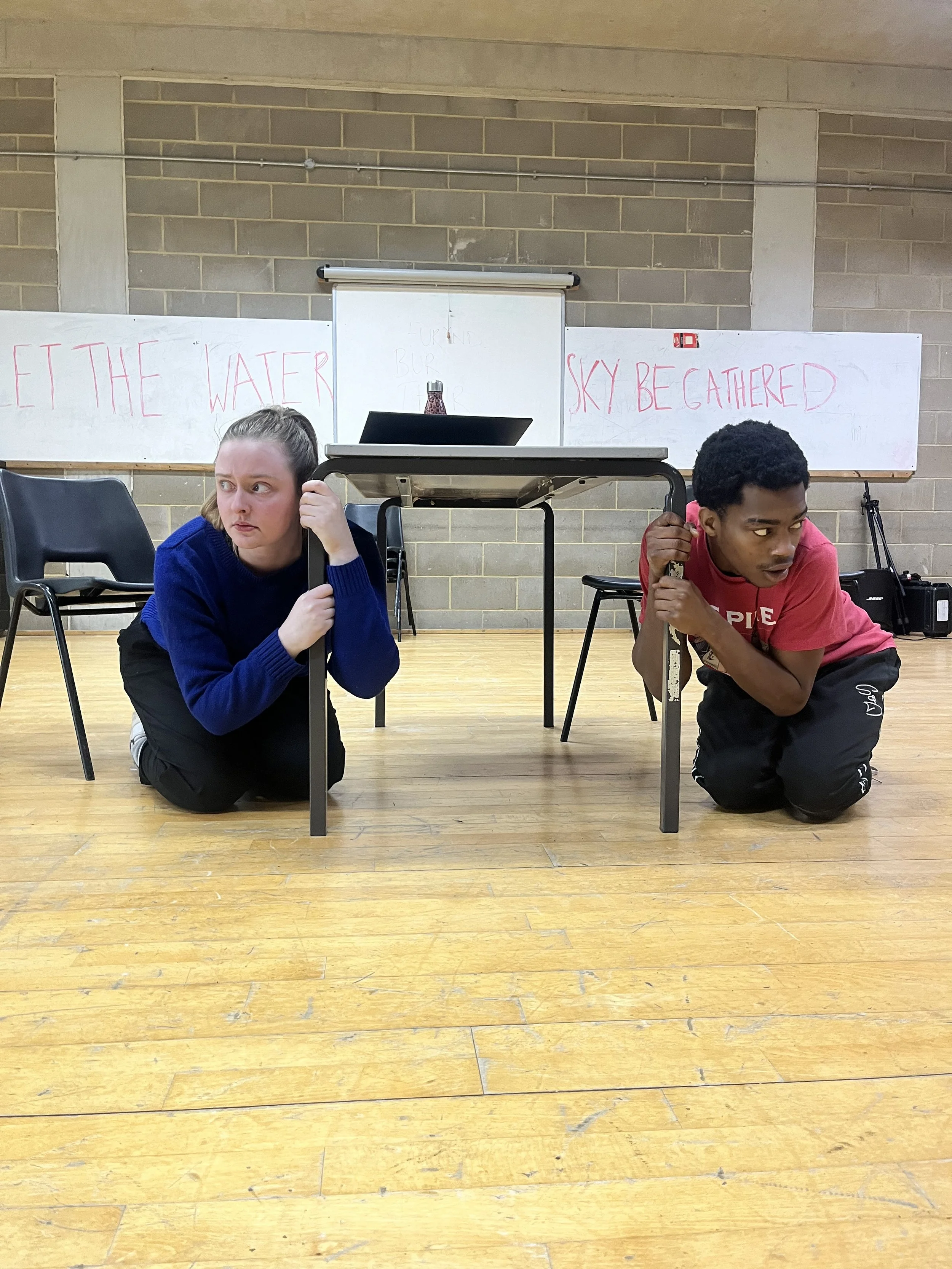 Rehearsals focused on physical play, tempo, improvisation, and clowning techniques to uncover humour through movement, rhythm, and relationships rather than just text. The process expanded my understanding of genre and introduced me to a more heightened theatrical language, challenging me to balance absurdity with clear political intent.